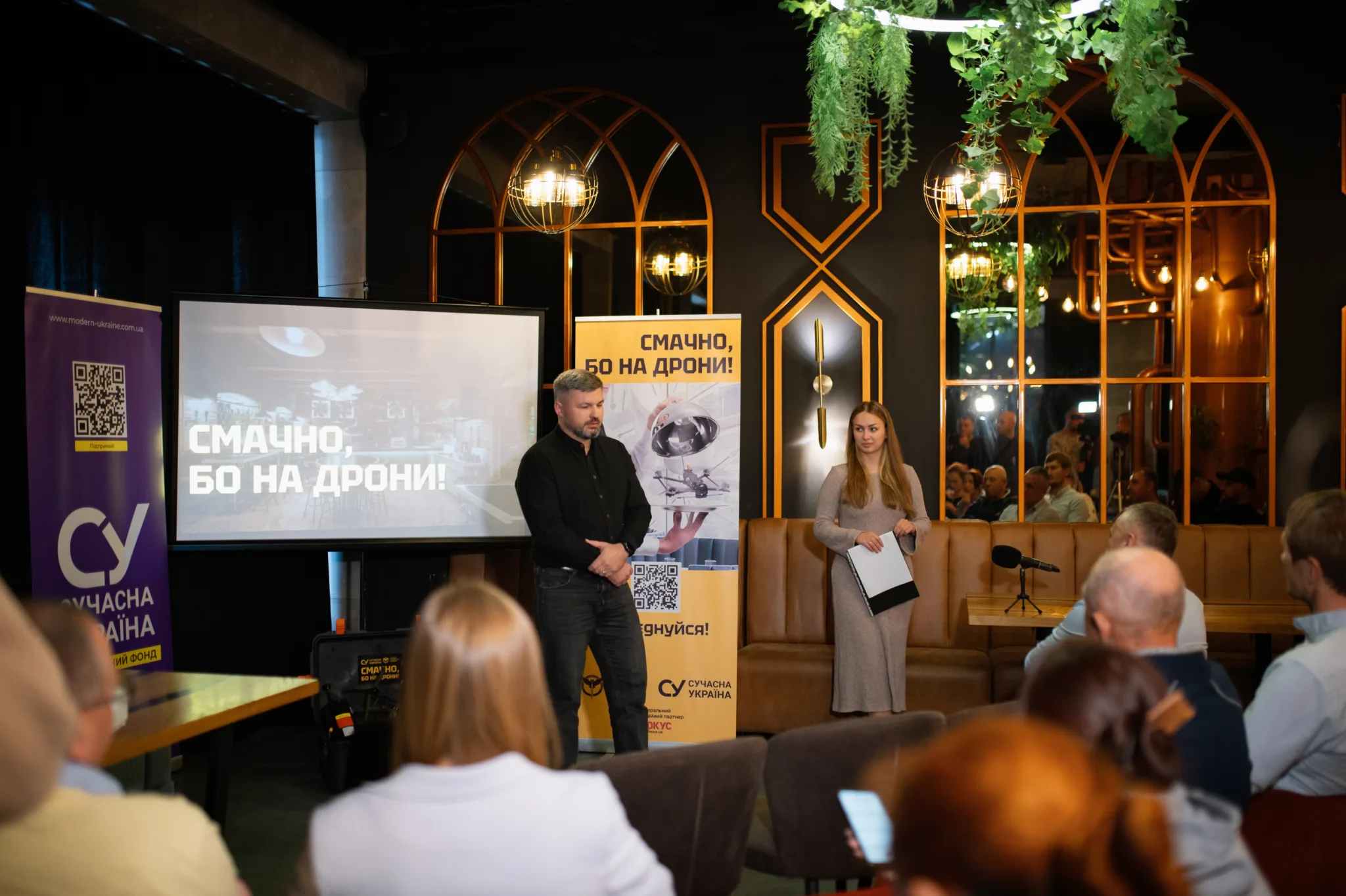 10 жовтня у Тернополі, у ресторані “Мідь”, провели презентацію благодійної кампанії “Смачно, бо на дрони!”, яку ініціював Фонд “Сучасна Україна” за сприяння ГУР МО України. Завдання акції — об’єднати заклади харчування по всій країні, аби разом збирати гроші на бойові пташки для розвідників.