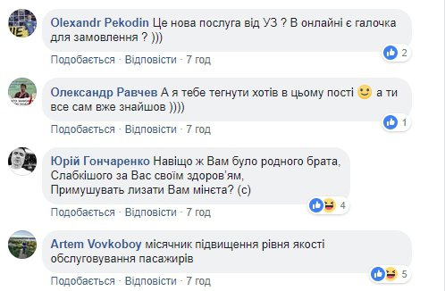 У коментарях користувачі мережі іронізують над нестандартною ситуацією. Припускають, що поведінка провідника є причиною відсутності квитків на цей поїзд.