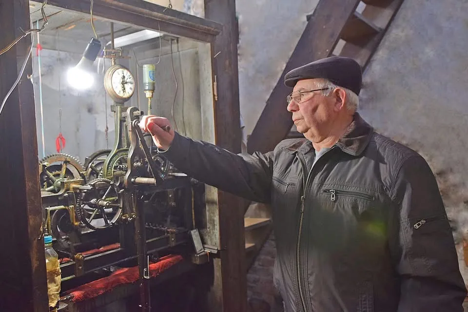 Механізм на вежі Чортківської ратуші, виготовлений у XIX столітті, щодня потребує ручного заводу. Вже понад три десятиліття цю місію виконує Роман Побуринний, продовжуючи справу свого батька.