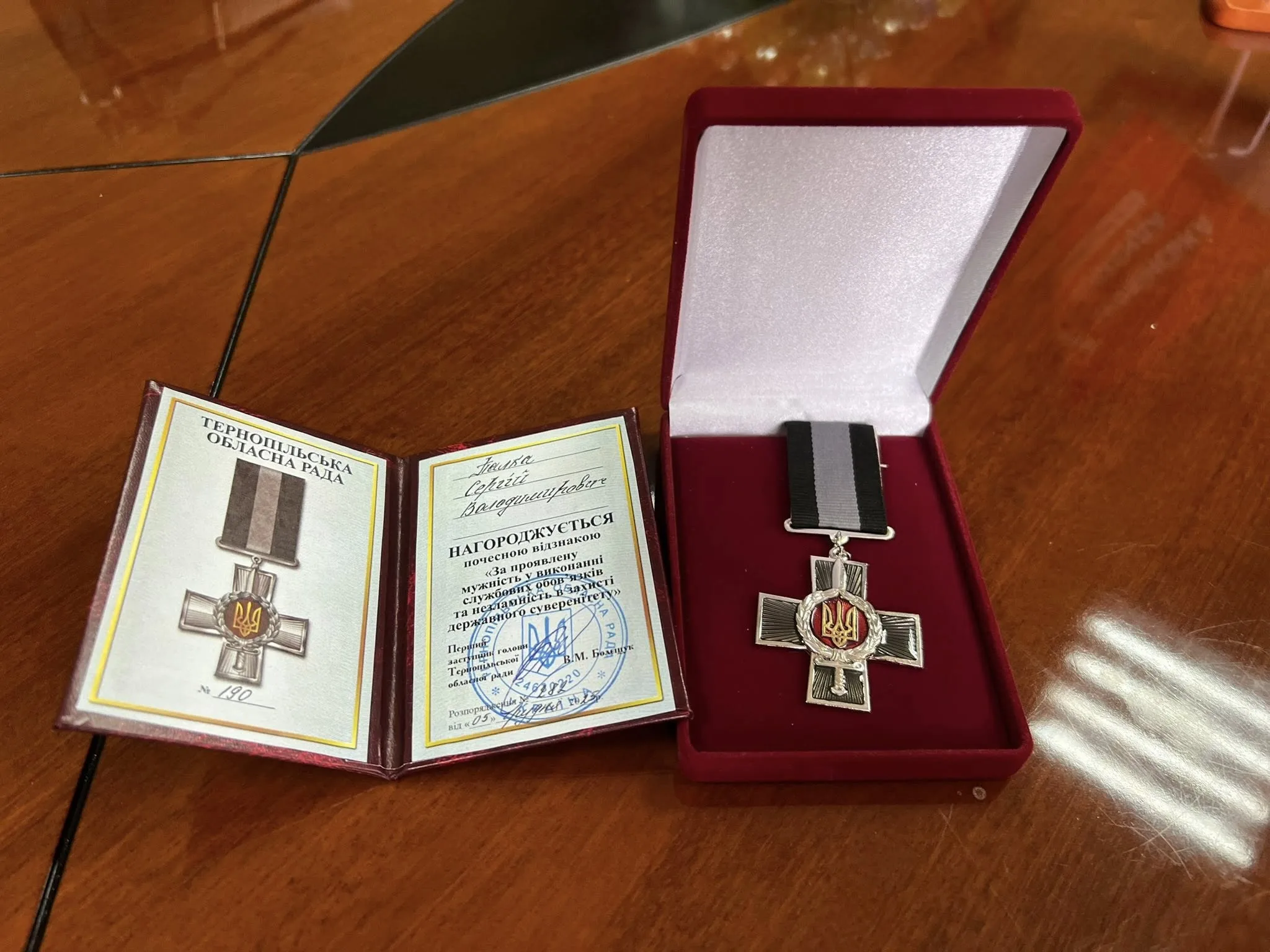 За незламність та мужність депутат облради Віталій Шафранський вручив хірургу почесну відзнаку Тернопільської обласної ради.