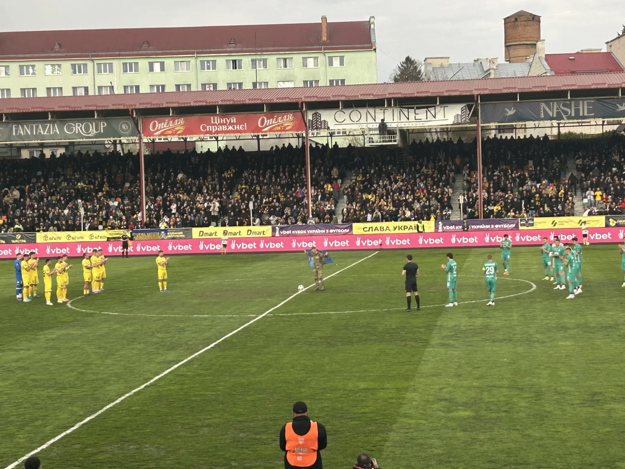 Символічний перший удар у матчі виконав Юрій Котіков — Герой із Чернівців. У цей момент футбол відійшов на другий план — на полі була історія сили.
