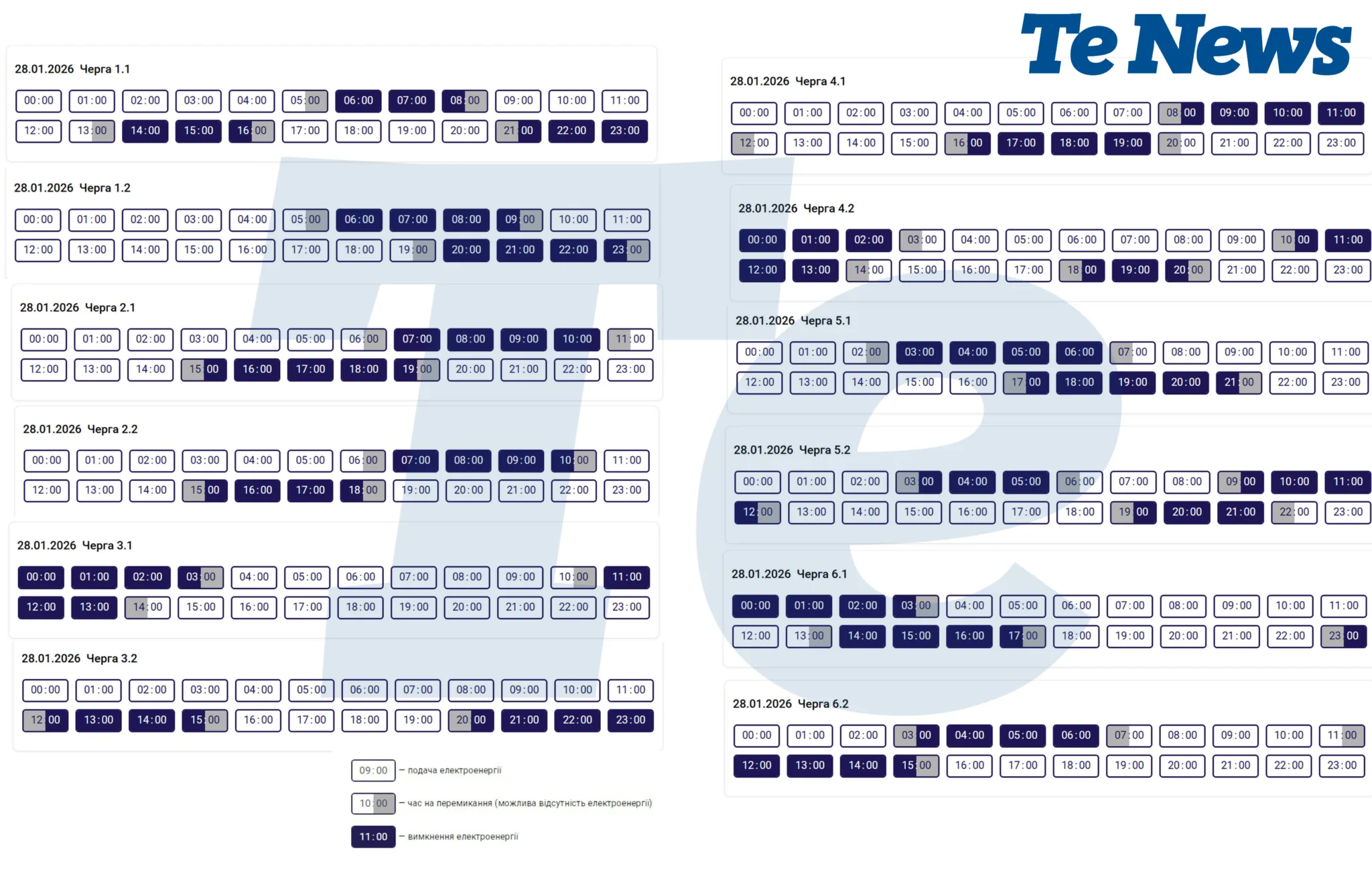АТ “Тернопільобленерго” 27 січня внесло зміни і забрало загальний графік відключення світла. Але Tenews зробив загальний графік для своїх читачів.