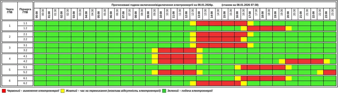 АТ “Тернопільобленерго” оновило грaфік погодинних відключень електроенергії в облaсті 8 січня.