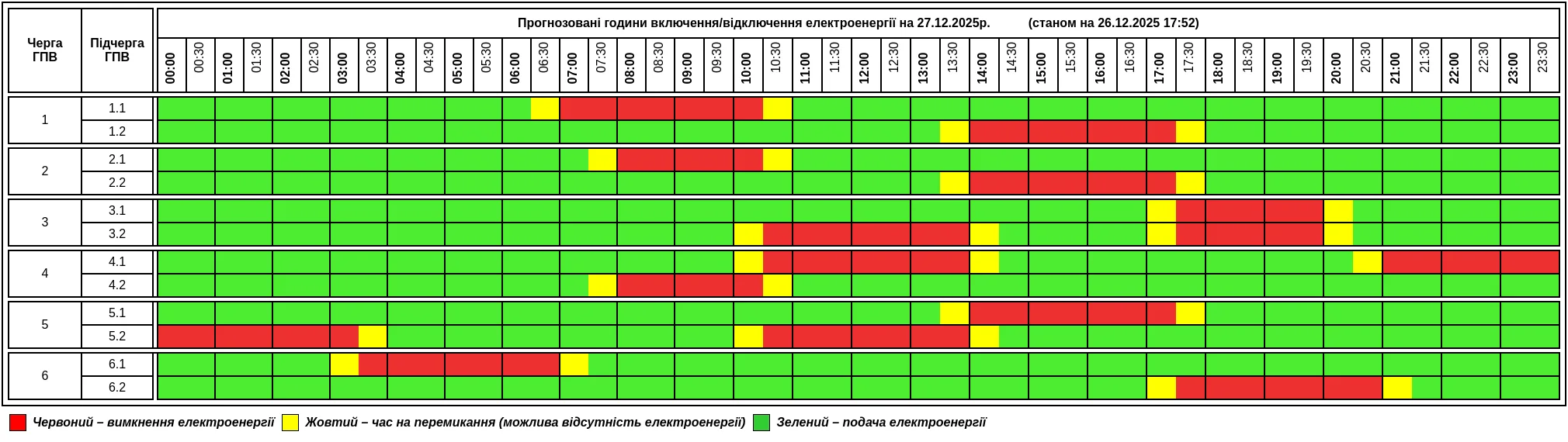 “Графік протягом доби може змінюватися. Просимо слідкувати за оновленнями на офіційному сайті”, — йдеться у повідомленні.