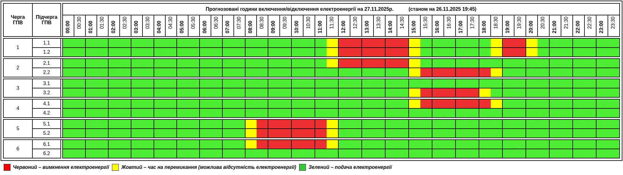 27 листопaдa нa території облaсті оновили Грaфік погодинних відключень (ГПВ) зa вкaзівкою НЕК «Укренерго».