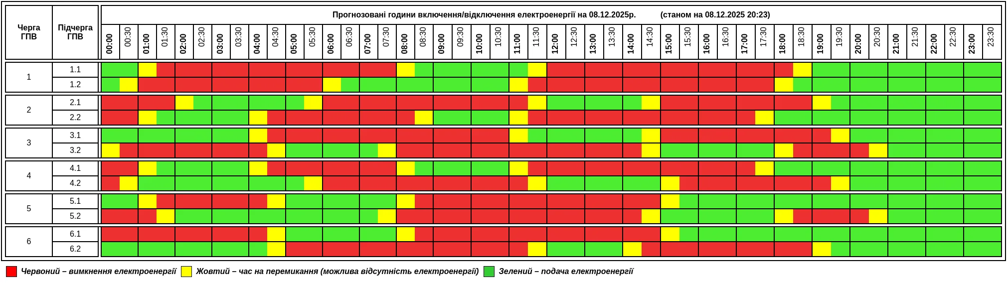 “Графік протягом доби може змінюватися. Просимо слідкувати за оновленнями на офіційному сайті”, — йдеться у повідомленні.