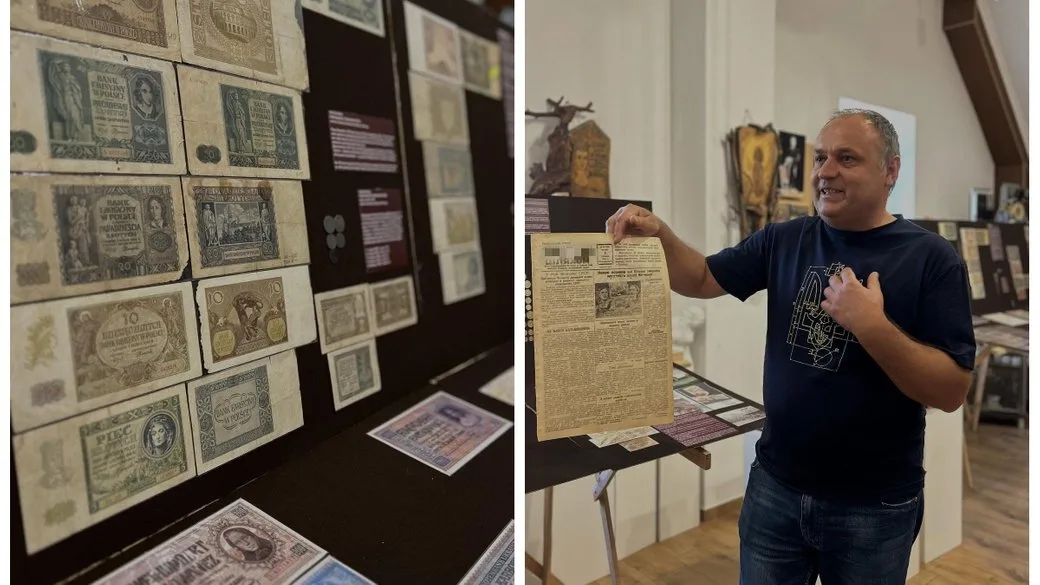 Серед цінних експонатів — бофон 1947 року із символікою ОУН-УПА, книжка про повстанські гроші та харчові картки 1943 року. Велика частина виставки присвячена гривні часів незалежності: представлені купюри, картки споживачів, купони та вирізки з газет із чергами за продуктами у 1990-ті роки.