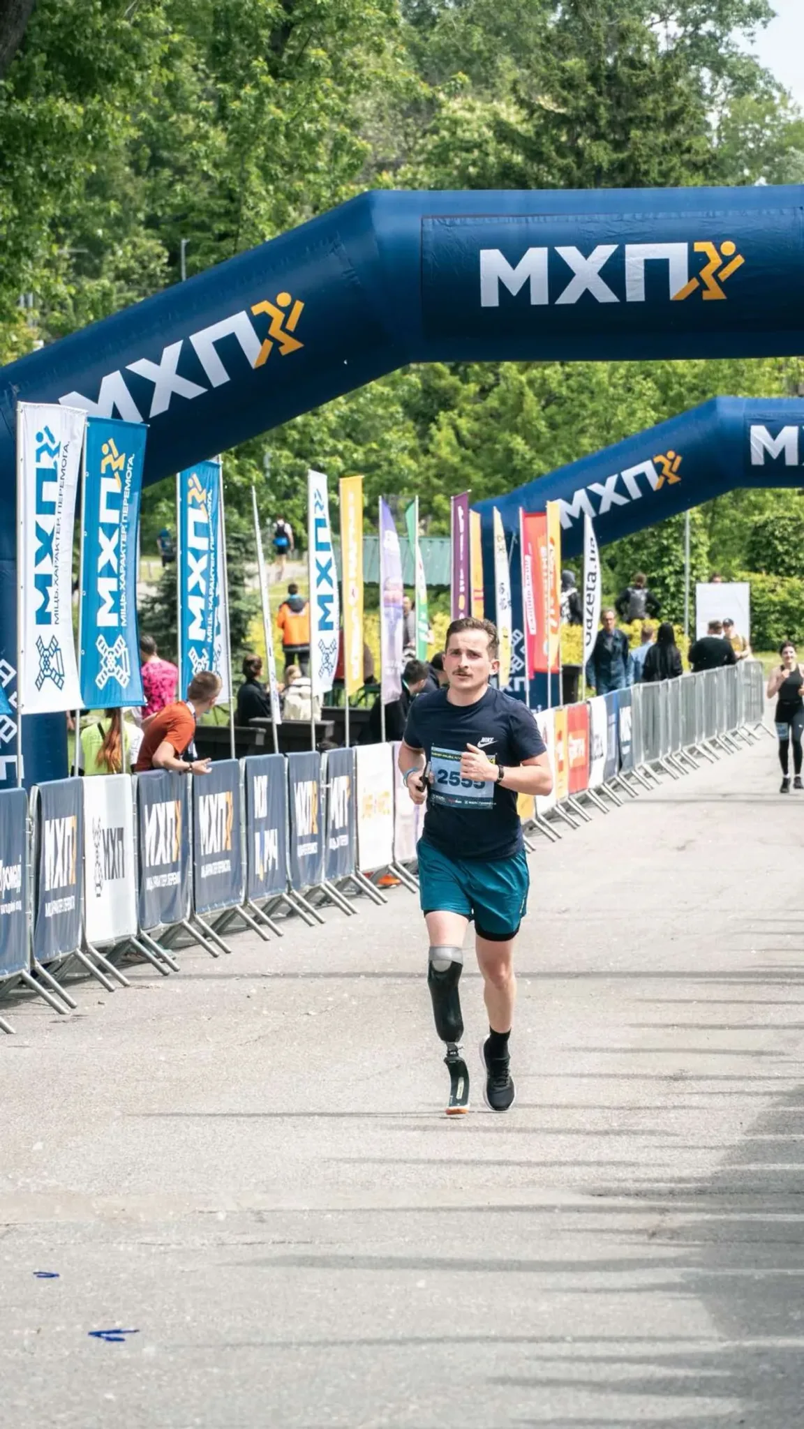Торік учасником MHP Run4Victory став ветеран, ментор із фізичного розвитку та безпеки в УАЛ та учасник київського марафону Олексій Лобанок. Він здолав 21 кілометр на протезі:
