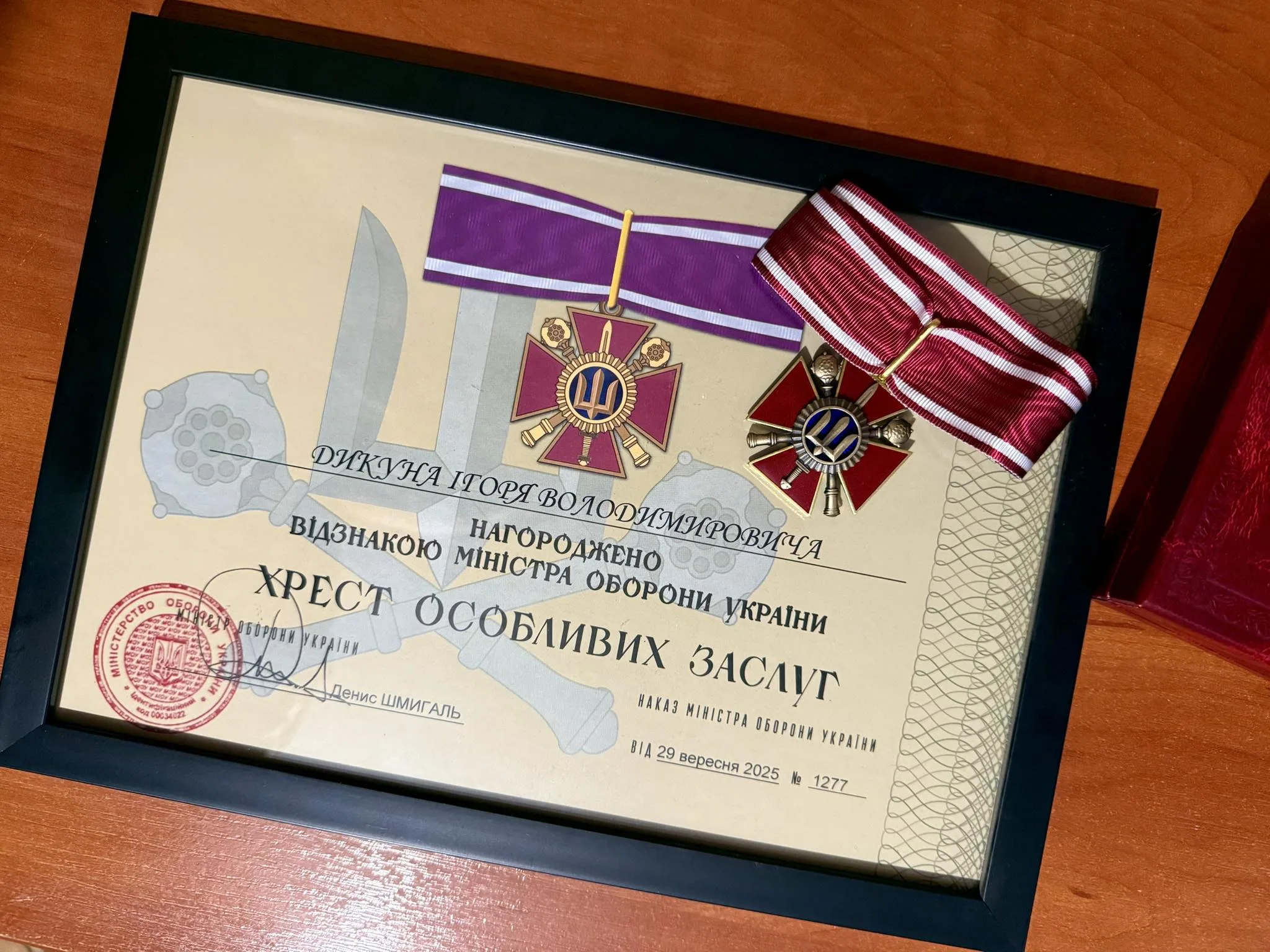 Герой України з Тернополя Ігор Дикун удостоєний почесної відзнаки — Хреста особливих заслуг від Міністерства оборони України.