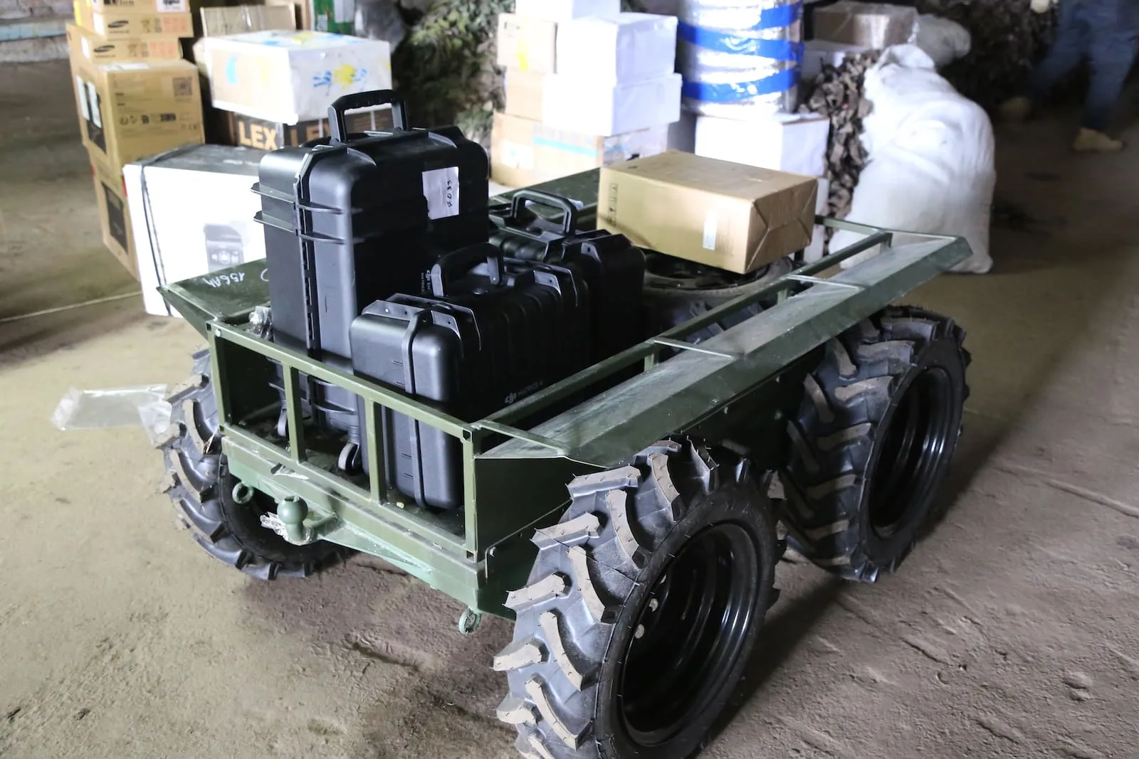 Серед переданого – наземний роботизований комплекс «Тарган 200», квадрокоптер Matrice 30T та два Matrice 4T, чотири зарядні станції ECOFLOW, шість акумуляторних батарей для безпілотників «Вампір», маскувальні сітки, техніка, а також великодні смаколики для бійців.
