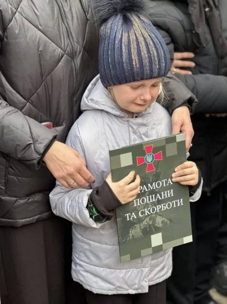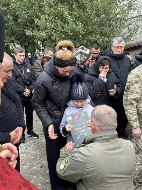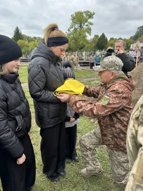 Обидві донечки тепер приходитимуть до батька на могилу, але вже не відчують його обіймів. Наймолодшій донечці вручили пам’ятну грамоту. Державний прапор з домовини передали в руки дружини Софії.