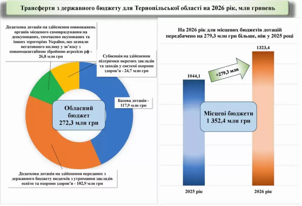 З державного бюджету область отримає 272,3 млн грн міжбюджетних трансфертів.