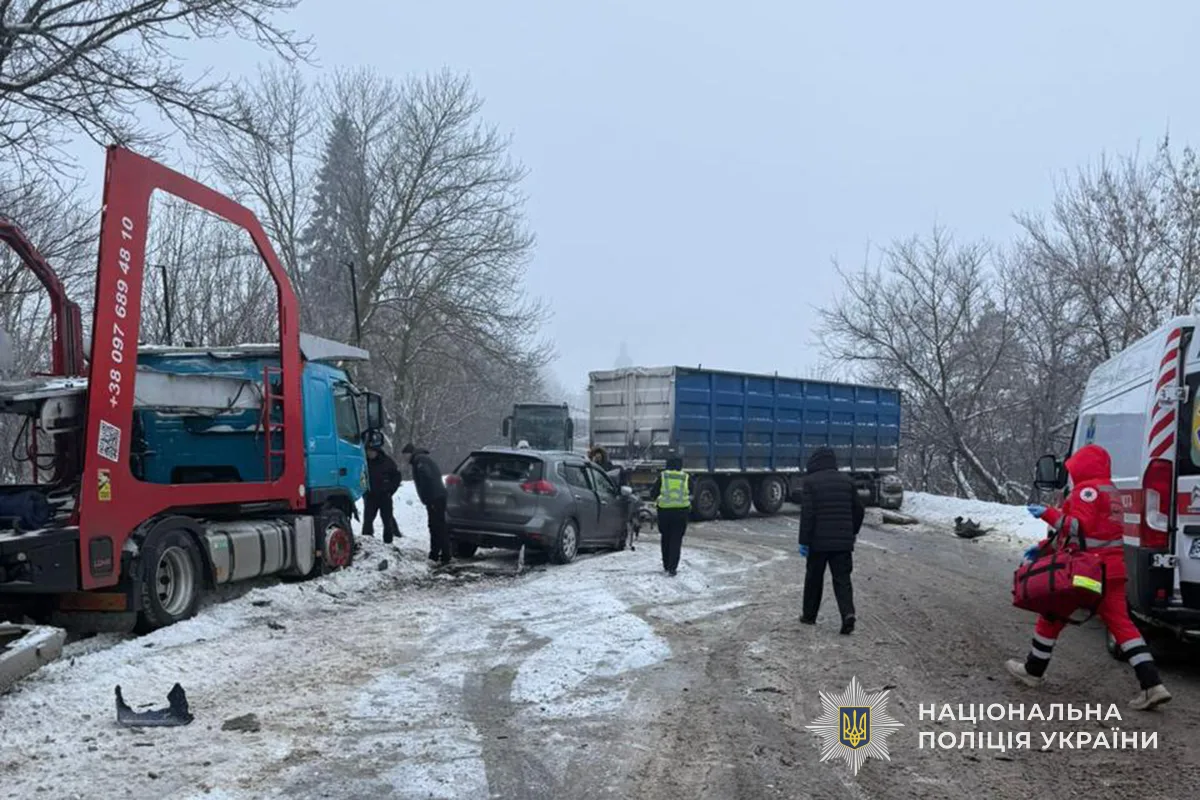 Співробітники Підволочиського відділення поліції встановили, що житель Миргорода, керуючи автомобілем Mitsubishi, виїхав на смугу зустрічного руху та врізався у вантажівку DAF. У цей час попутний автомобіль Volvo, уникаючи удару, допустив зіткнення з іншим зустрічним автомобілем Nissan X-Trail.