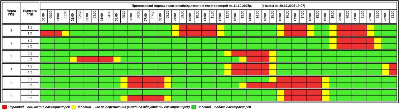 У компанії зазначають, що графік протягом доби може змінюватися, тому рекомендують стежити за оновленнями на офіційному сайті.