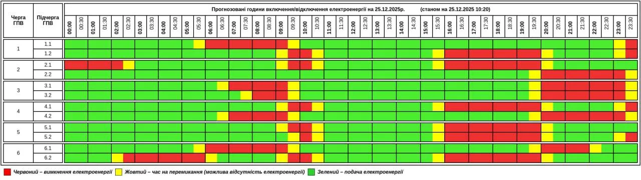 “Графік протягом доби може змінюватися. Просимо слідкувати за оновленнями на офіційному сайті”, — йдеться у повідомленні.