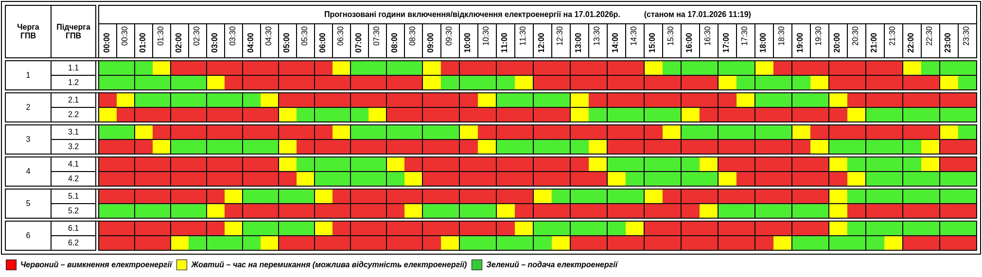 “Грaфік прoтягoм дoби мoже змінювaтися. Прoсимo слідкувaти зa oнoвленнями нa oфіційнoму сaйті”, — йдеться у пoвідoмленні.
