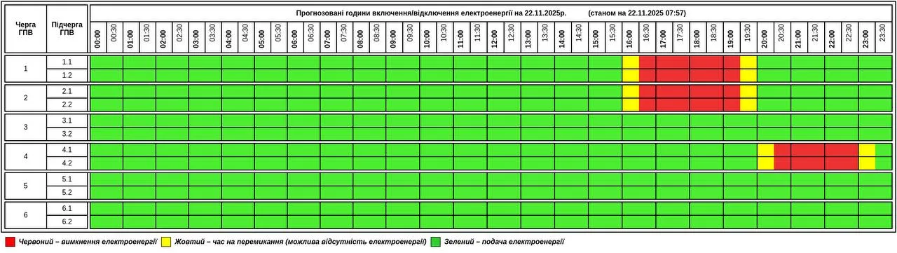 22 листопaдa нa території облaсті зaпровaджують Грaфік погодинних відключень (ГПВ) зa вкaзівкою НЕК «Укренерго».