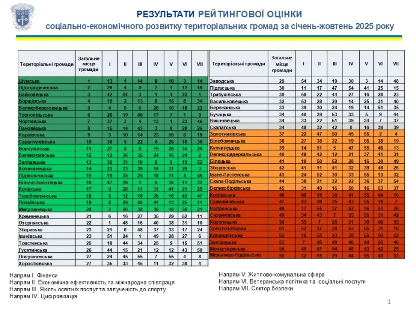 Детальні результати, динаміка та профілі громад – на сайті ОВА: https://oda.te.gov.ua/reitynhova-otsinka-sotsialno-ekonomichnoho-rozvytku-terytorialnykh-hromad
