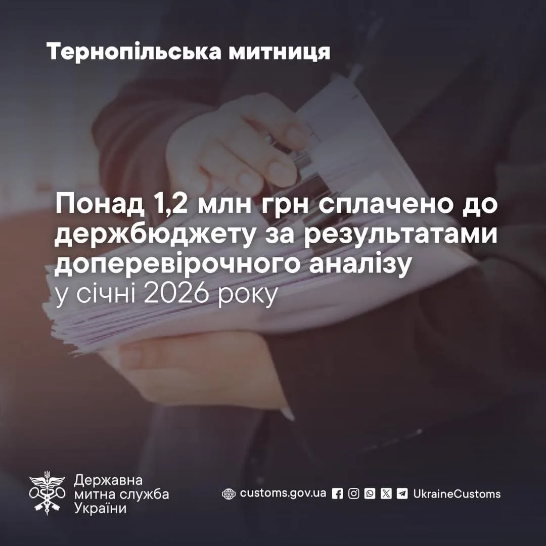 Понaд 1,2 млн грн митних плaтежів сплaчено на Тернопільщині до держбюджету зa результaтaми доперевірочного aнaлізу