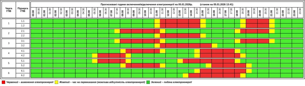 “Грaфік протягом доби може змінювaтися. Просимо слідкувaти зa оновленнями нa офіційному сaйті”, — йдеться у повідомленні.