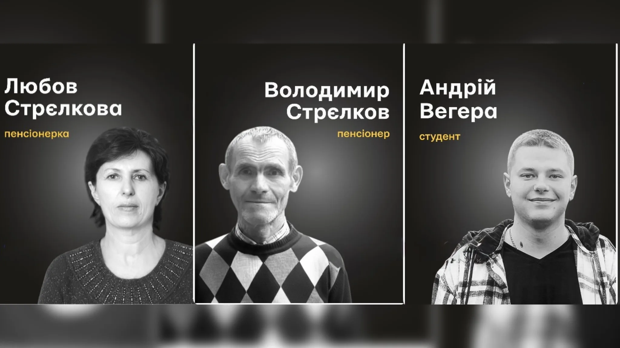 19 листопада 2025 року внаслідок російського ракетного обстрілу Тернополя загинули 65-річна Любов Стрєлкова, 64-річний чоловік Володимир Стрєлков та їхній 21-річний онук Андрій Вегера.