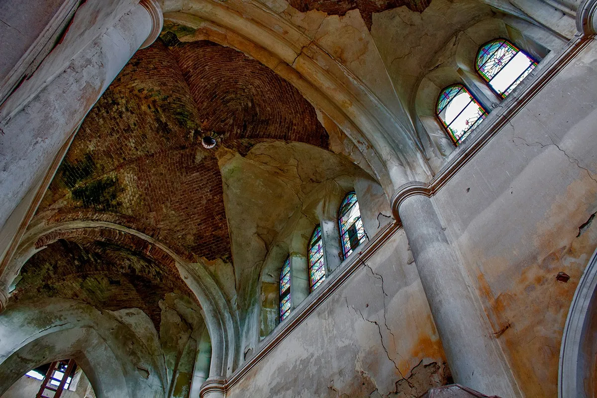 Храм пережив війну та радянську владу: після закриття його використовували як зерносховище та склад мінеральних добрив, а частину стіни розібрали для заїзду вантажівок. Дах горів близько двадцяти років тому, від пожежі постраждали французькі вітражі — збереглися лише фрагменти.