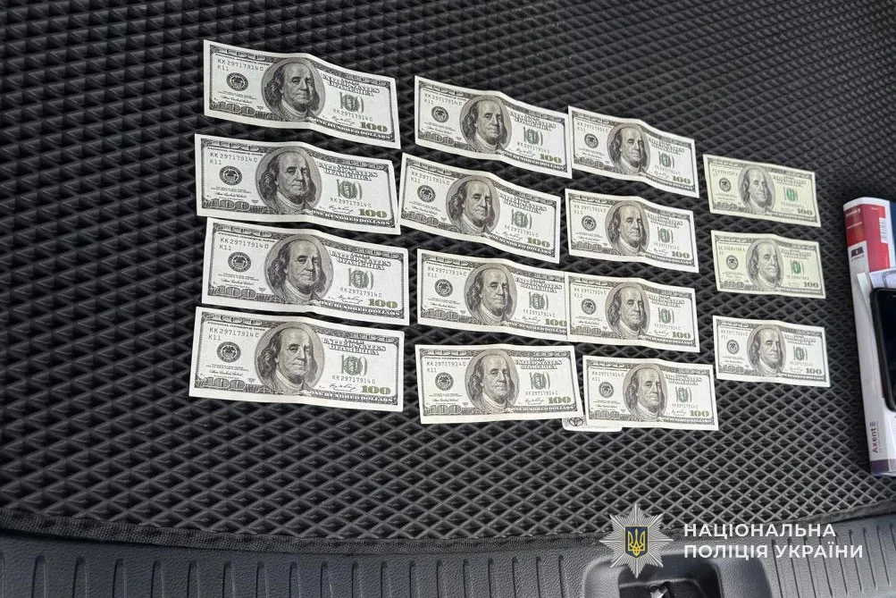 Правоохоронці затримали підозрюваного під час отримання ним 1500 доларів США неправомірної вигоди відповідно до ст. 208 КПК України.