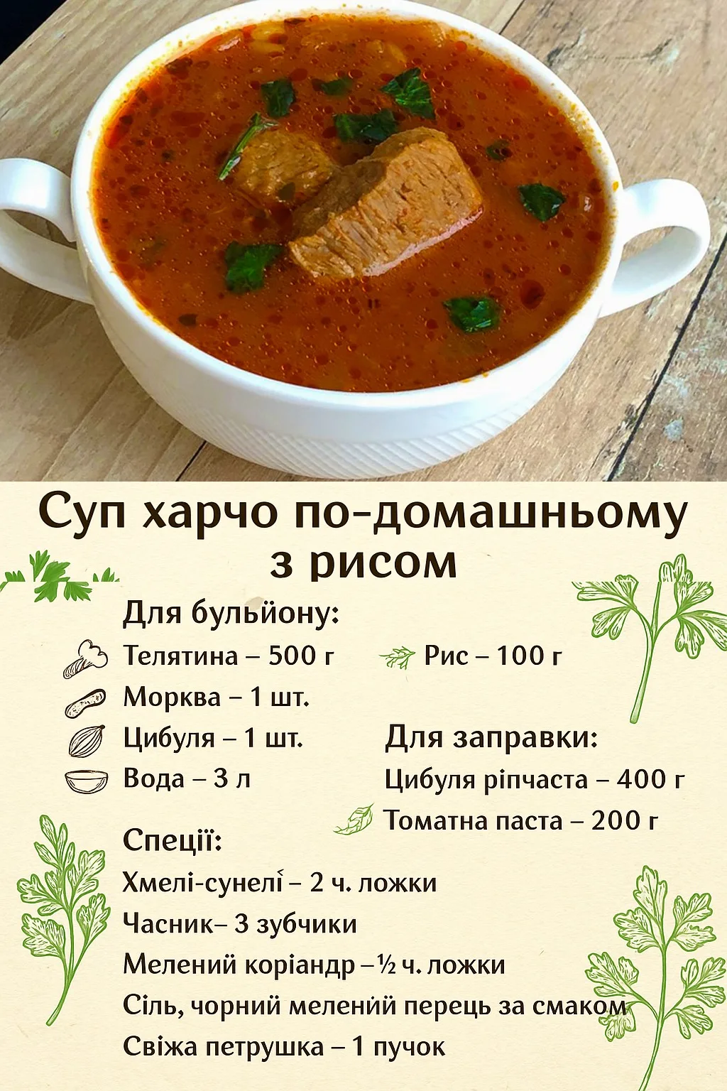 Пропонуємо додати до вашого осіннього меню ароматний і ситний суп харчо з телятиною та рисом. Цей простий рецепт дозволить приготувати справжній грузинський делікатес у домашніх умовах, наповнивши кухню теплом і затишком.