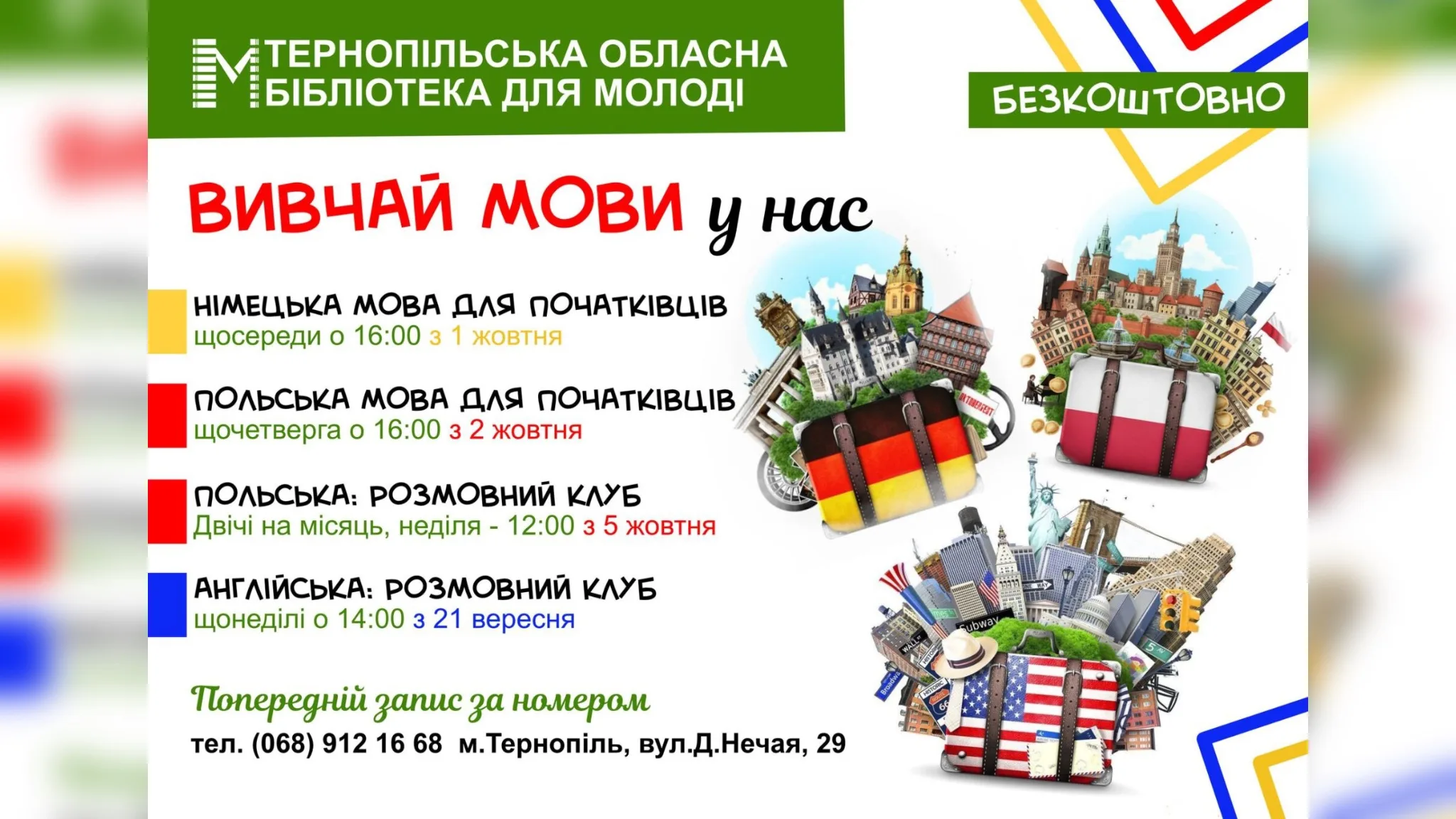 Приєднуйтеся до клубів вивчення іноземних мов у Тернопільській обласній бібліотеці для молоді.