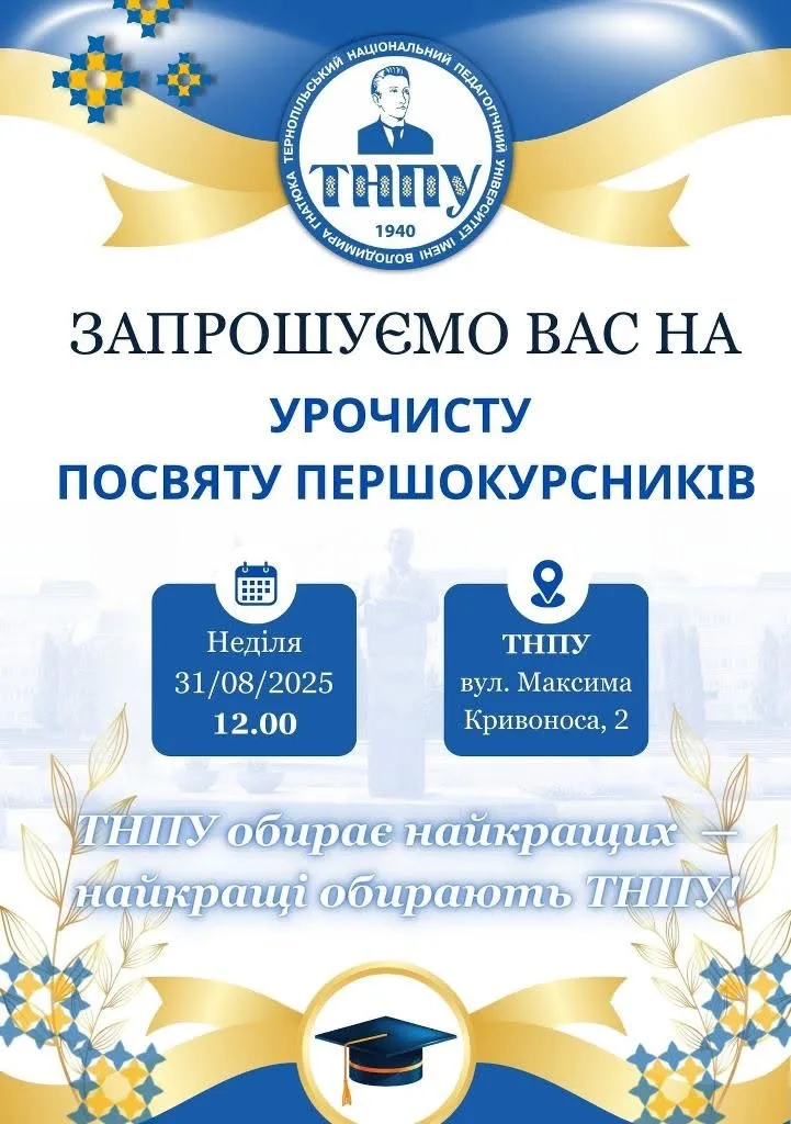 Подія відбудеться 31 серпня о 12:00 перед головним корпусом Тернопільського національного педагогічного університету імені Володимира Гнатюка.