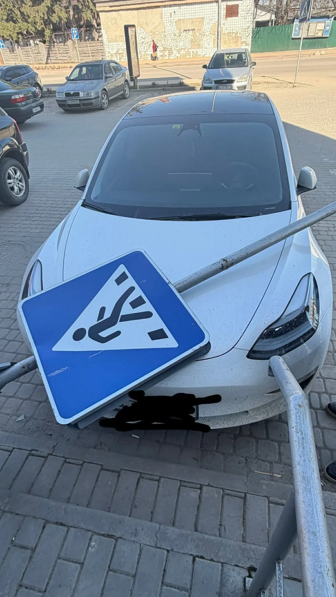 Конструкція впала поблизу пішохідного переходу — місця, де щодня проходять сотні людей. Цього разу обійшлося лише пошкодженням металу машини, адже в момент падіння ні в салоні авто, ні поруч на тротуарі нікого не було.