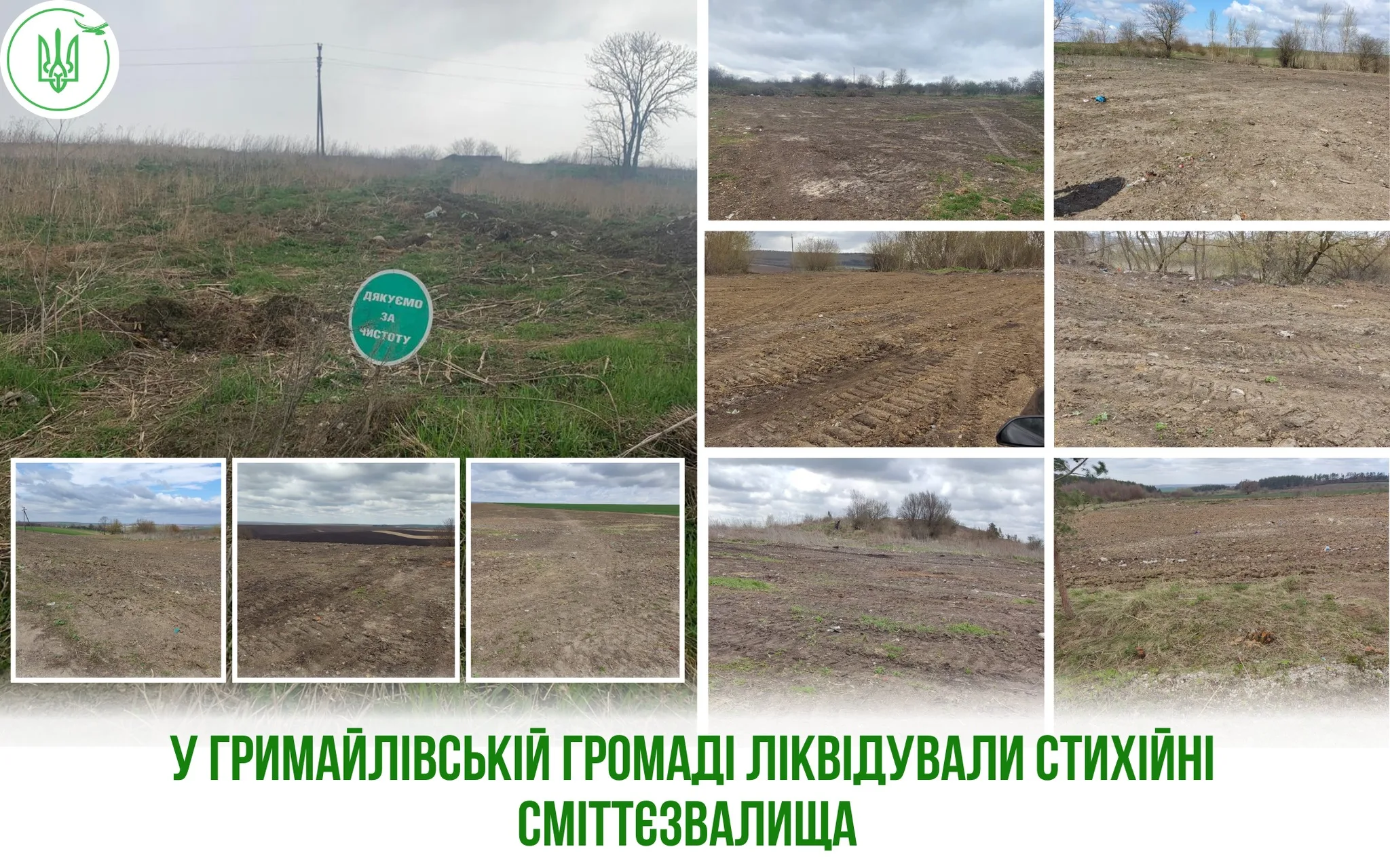 У Гримайлівській територіальній громаді ліквідували 9 несанкціонованих сміттєзвалищ, які раніше виявили екологи. Їх загальна площа становила понад 1900 квадратних метрів.