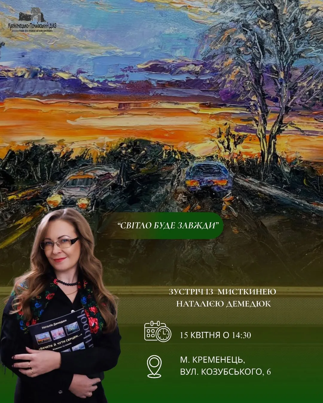 Це вже друга виставка Наталії Демедюк у Кременці. Попередня відбулася у 2025 році в межах мистецького проєкту «Діалог двох культур».
