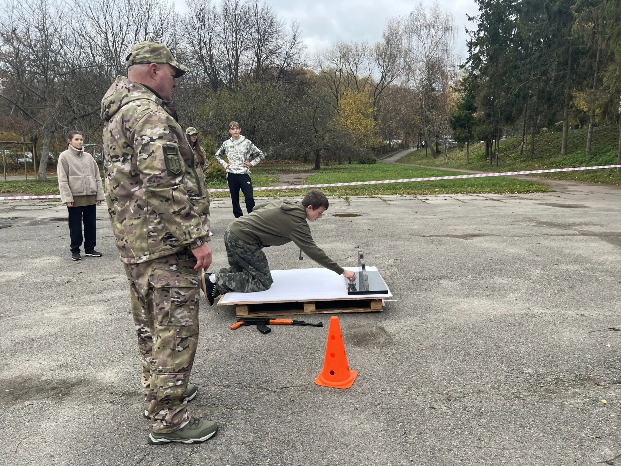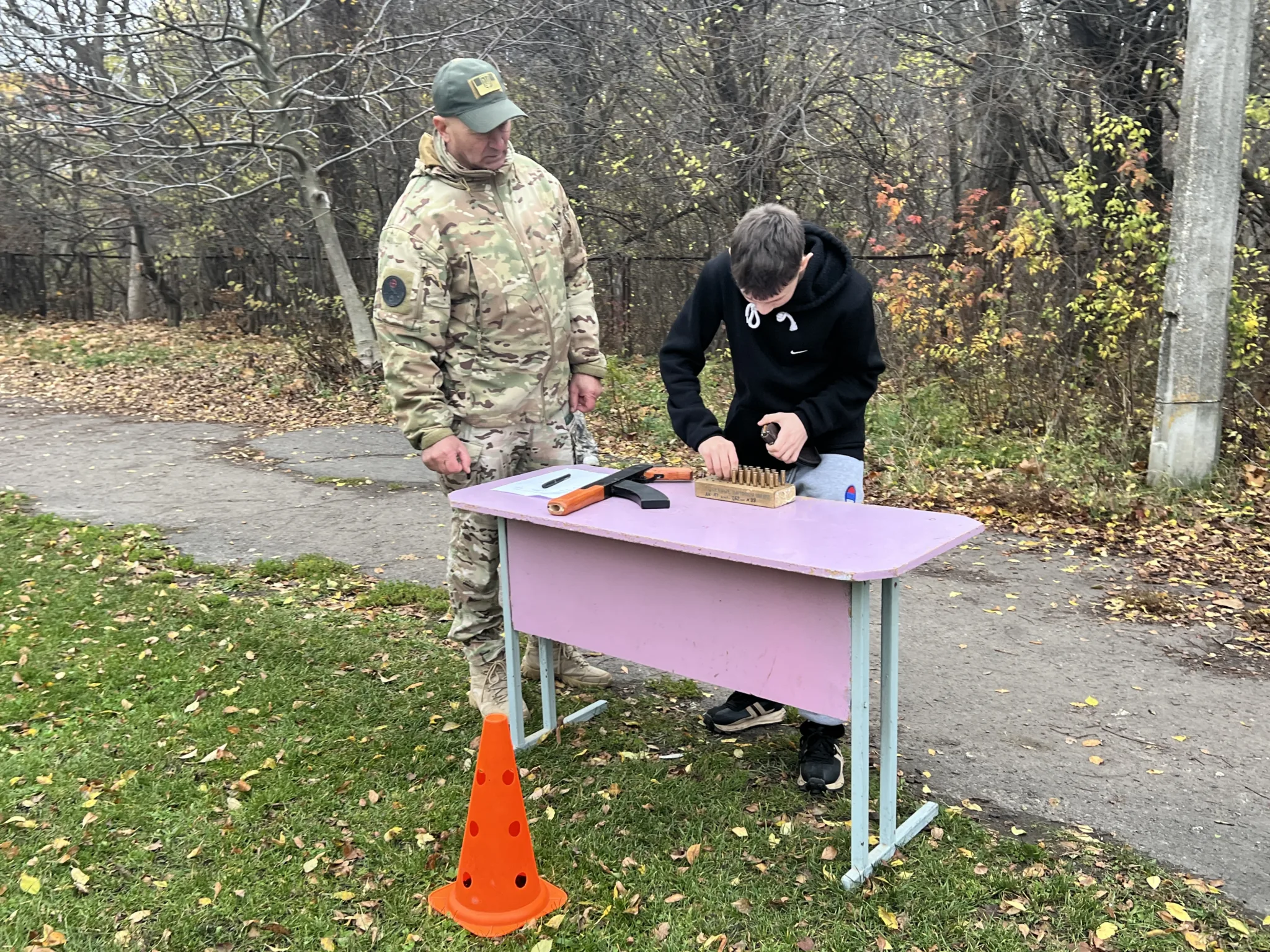 До участі долучилися три команди, сформовані з учнів 8–10 класів. Етапи включали перенесення боєкомплекту, стрільбу з пневматичної гвинтівки, розбирання і збирання автомата Калашникова, метання гранати в ціль, спорядження магазину патронами та евакуацію “пораненого”.