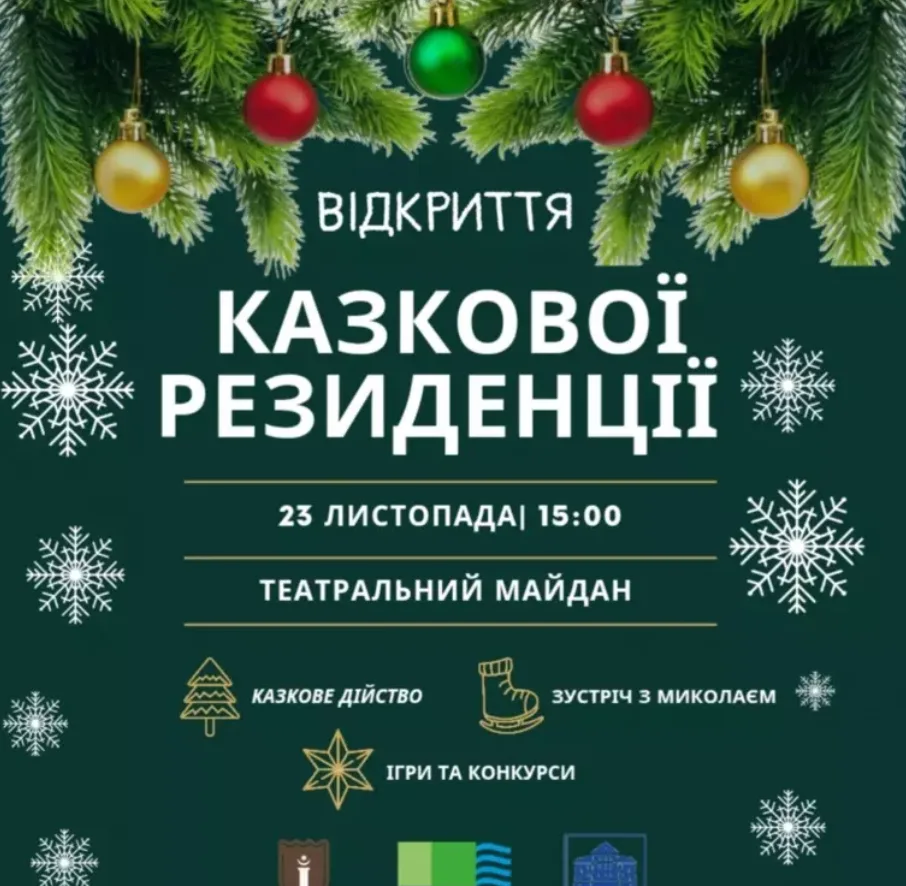 23 листопада на Театральному майдані відбудеться відкриття Казкової резиденції (Хатинки Миколая). На відвідувачів чекає святкове дійство, конкурси для дітей і, звичайно, зустріч зі Святим Миколаєм. Початок заходу о 15:00 год.