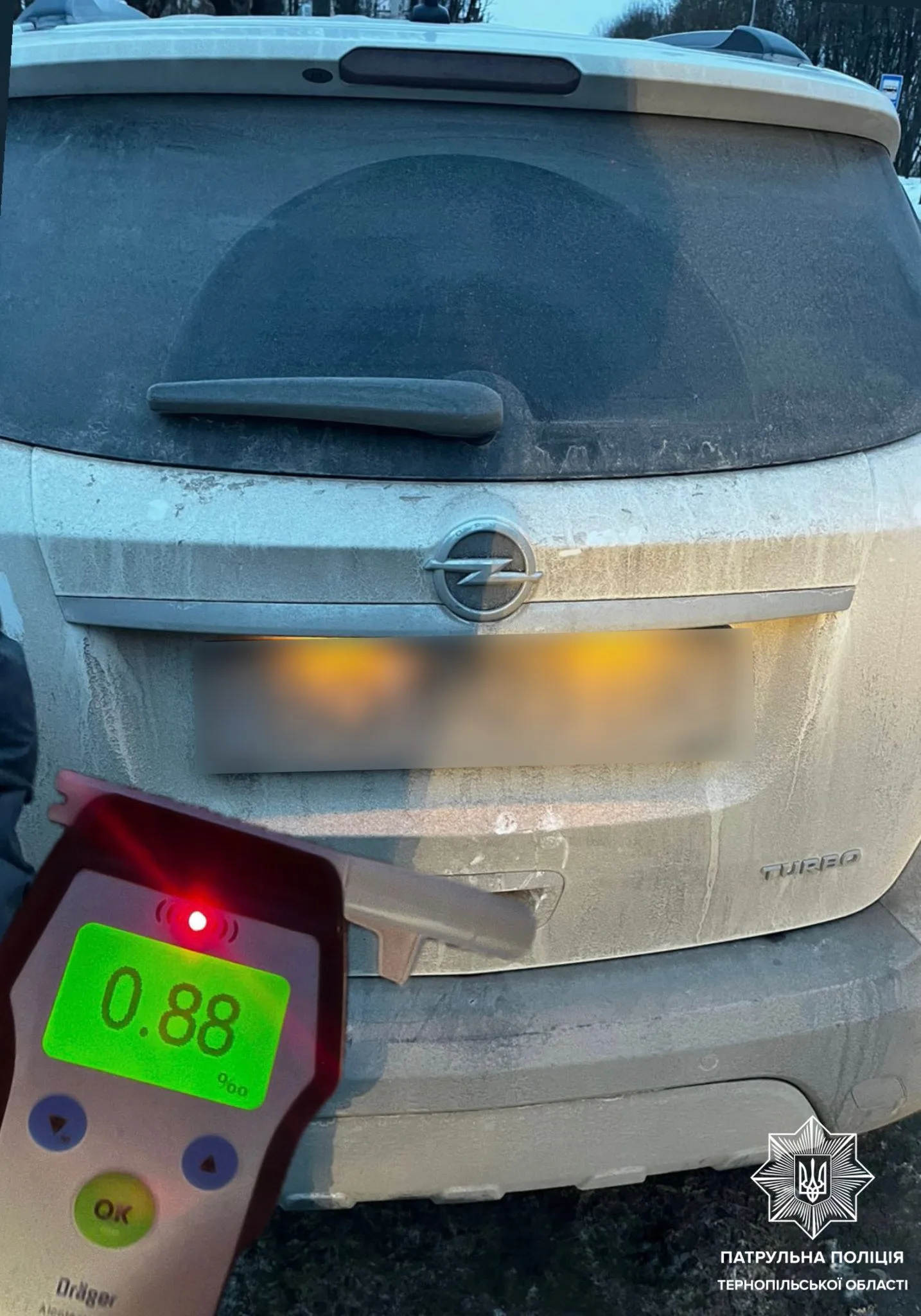 Отримавши інформацію про авто втікача, патрульні швидко розшукали його на вулиці Володимира Винниченка. Під час спілкування з водієм інспектори помітили ознаки алкогольного сп’яніння. Чоловік погодився пройти огляд за допомогою приладу Драгер, результат — 0,88 проміле.