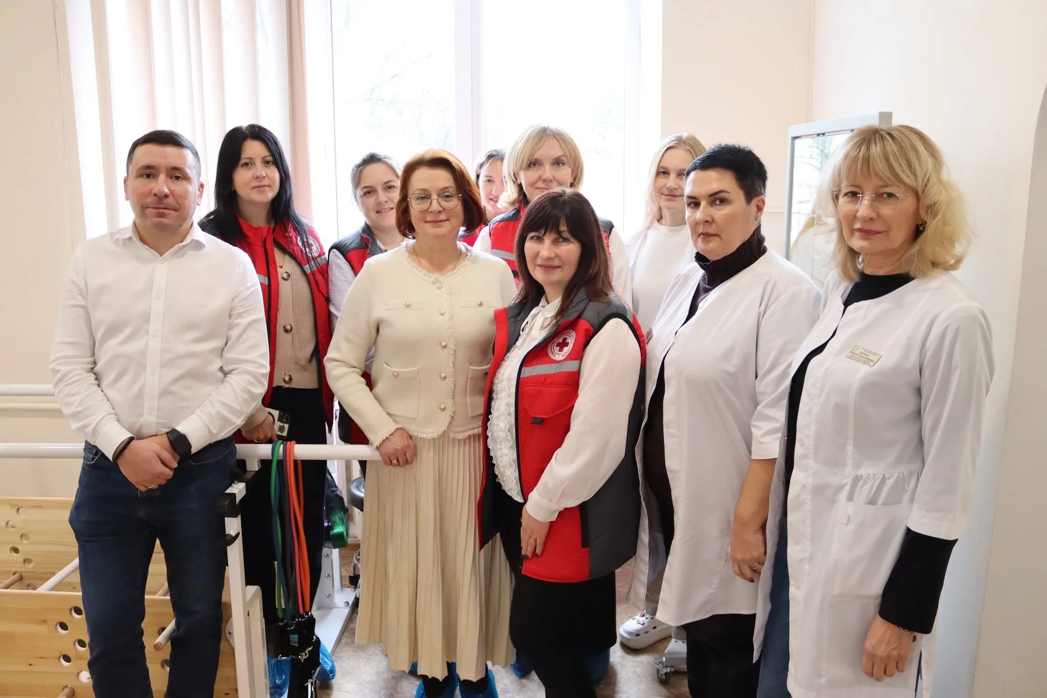 «У просторі – вдосталь обладнання від червонохрестівців: табурет на колесах, бруси для відновлення навичок ходьби, балансувальна півсфера, балансувальна подушка, реабілітаційна бігова доріжка, шведська стінка, килимки для вправ, степ-платформа, реабілітаційний тренажер, фітболи, велотренажер, еспандери тощо», – йдеться у дописі.