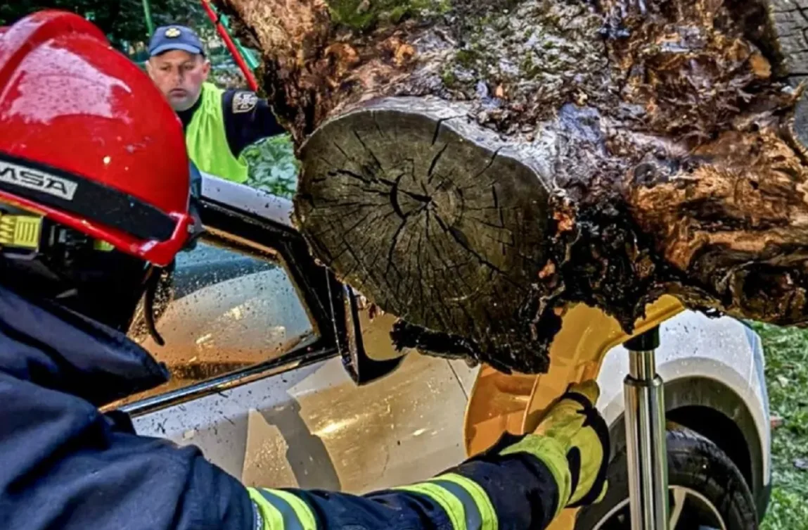 У центрі Тернополя дерево розтрощило припаркований автомобіль