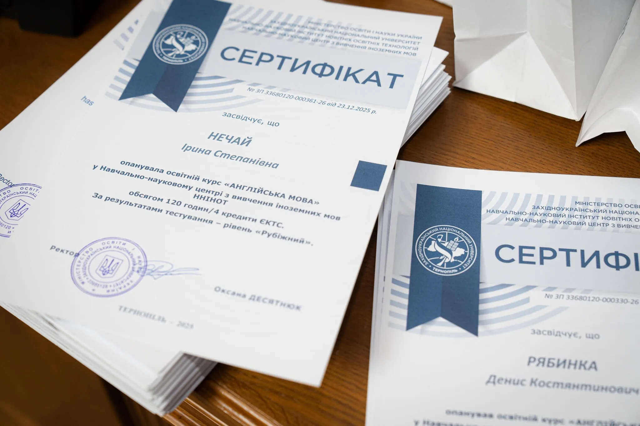 У Західноукраїнському національному університеті відбулося вручення сертифікатів учасникам освітнього проєкту «Англійська мова для ветеранів війни та членів їхніх сімей». Ініціатива спрямована на підтримку ветеранів і їхніх родин через здобуття нових знань та можливостей для професійного розвитку.