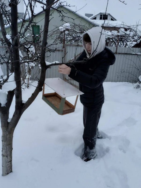 В умовах низьких температур і снігових заметів птахам важко знаходити їжу. Щоб допомогти пернатим, школярі створили годівнички з підручних та екологічних матеріалів і розмістили їх на території школи та поблизу житлових будинків.