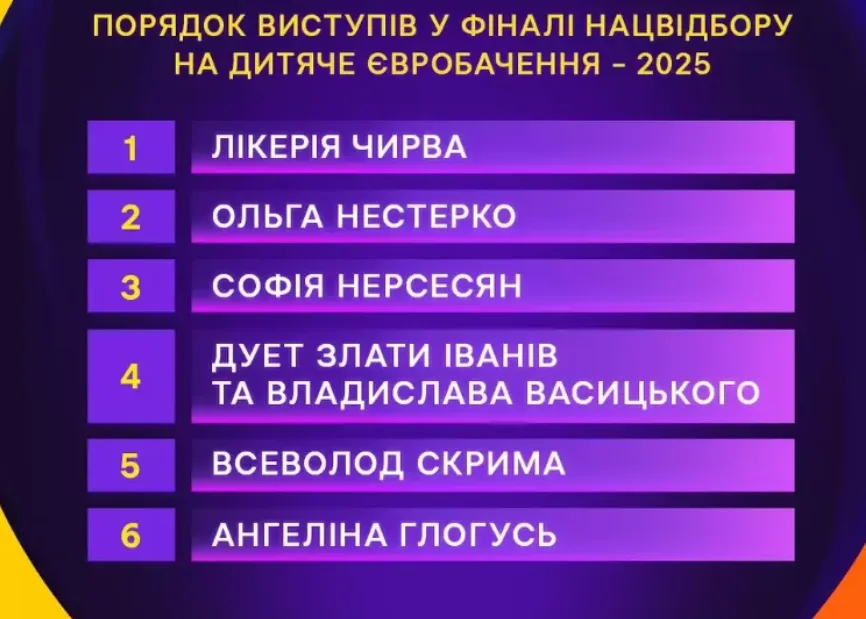 У застосунку Дія стартувало глядацьке опитування про представника від України на Дитячому Євробаченні-2025. Участь у нацвідборі бере 13-річна співачка з Тернополя Ангеліна Глогусь, яка представлена під номером 6.