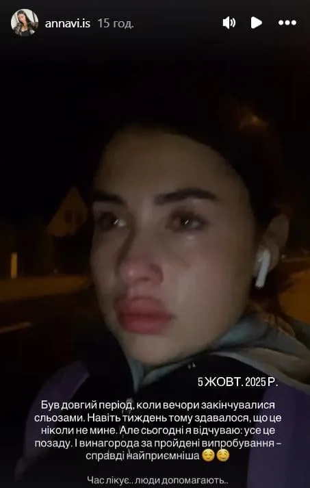Іванна опублікувала в своєму Instagram-акаунті відео від 5 жовтня, на якому крокує вулицею і плаче. Дівчина розповіла підписникам, що їй важко було повірити, що болісний період життя скінчиться, але тепер вона залишає його позаду: