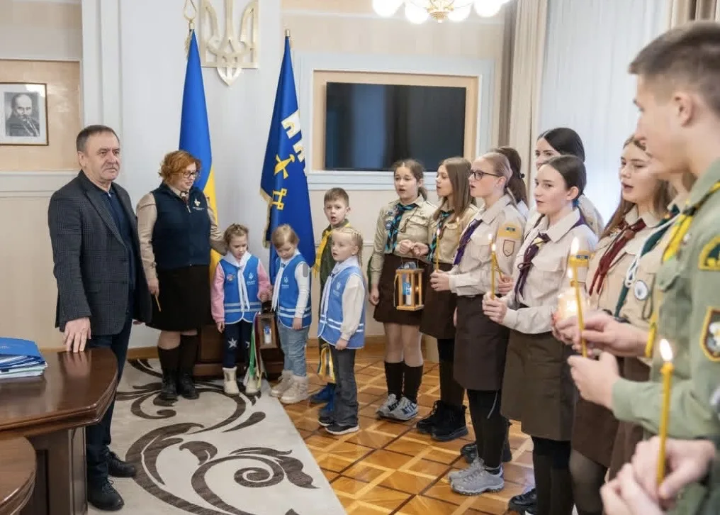Представники Тернопільського обласного осередку Пласту передали Вифлеємський вогонь Миру в Тернопільську ОВА.