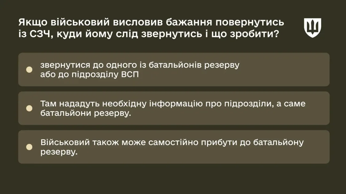 Якщо військовий висловив бажання повернутись із СЗЧ, куди йому слід звернутись і що зробити?