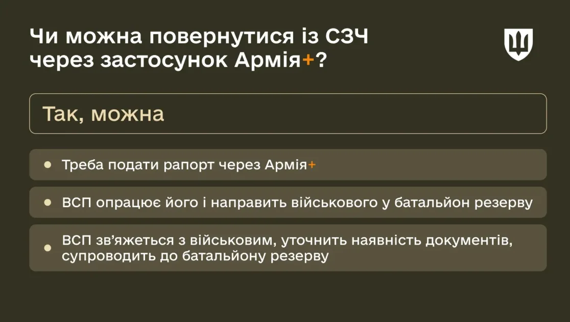 Чи можна повернутися із СЗЧ через застосунок Армія+?