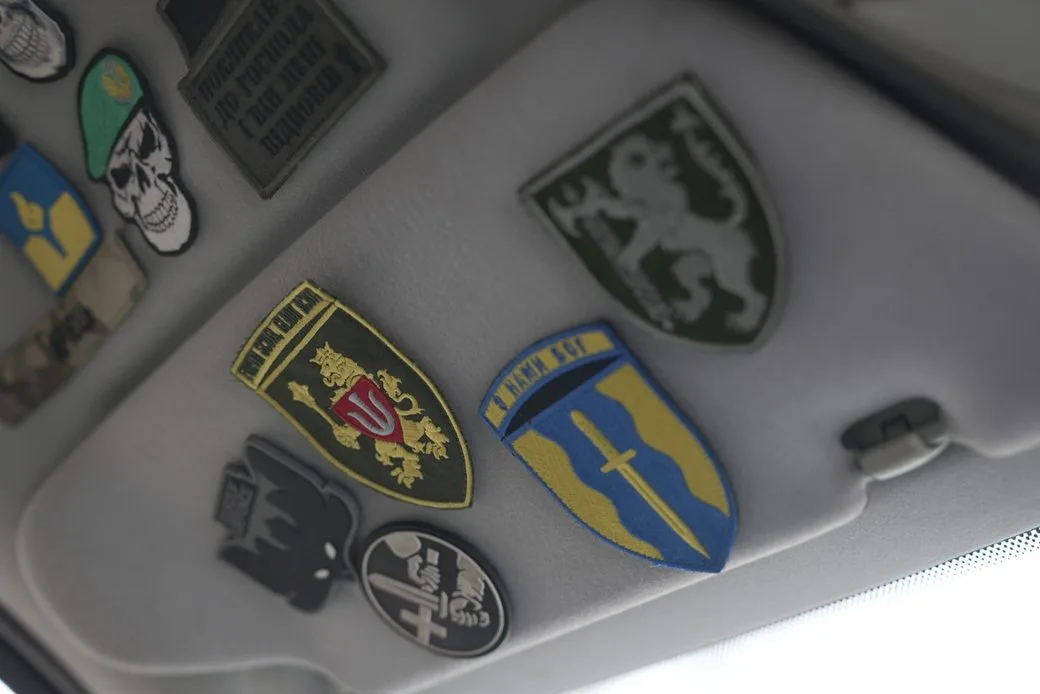 В aвтомобілі військового колекція шевронів з різних бригaд. Кaже, почaв їх збирaти, коли долучився до військa: