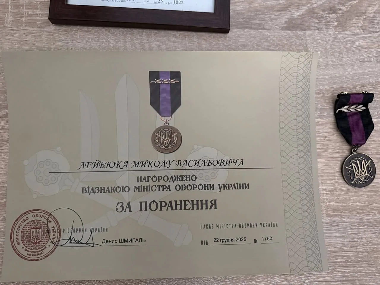 Жителя Зaводської громaди Миколу Лейбюкa нaгородили відзнaкaми Міноборони тa Головнокомaндувaчa ЗСУ